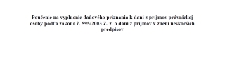 Opatrením MF SR č. MF/14317/2014-721 - § 1 ods. 3 - je s účinnosťou od 01.01.2015 ustanovený nový vzor tlačiva daňového priznania k dani z príjmov právnických osôb.